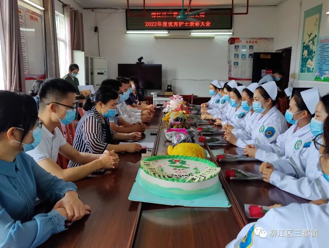 慰问组一行先后到不同科室看望节日在岗值班的护士和其他医护人员,为他们送上鲜花、蛋糕,并致以节日的问候。随后,在会议室召开座谈会并开展“2022年度优秀护士表彰”活动。会上,镇党委副书记、镇长周毅代表三都镇党委、政府对所有护士和医护人员在“3·11”疫情防控工作中舍小家为大家,不畏艰辛作出的突出贡献表示衷心的感谢和崇高的敬意!并鼓励大家继续传承和发扬“南丁格尔精神”,不断加强业务学习,提高自身素质,为辖区群众的生命健康做出应有的贡献。并对柳江农村合作银行三都支行扎根基层,关心服务医护行业表示感谢。活动当天,三都支行长周嘉赞一同参加活动。