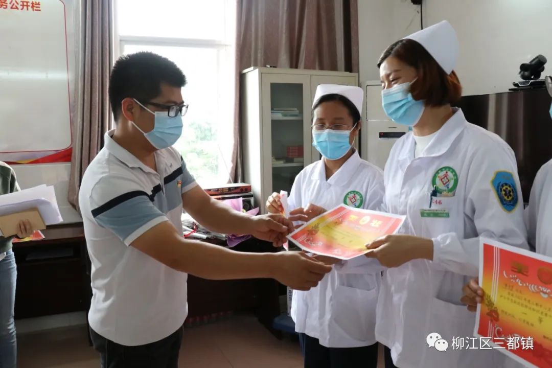 南丁格尔曾经说过:“护士其实是没有翅膀的天使,是真善美的化身。”5月12日,正值第111个“国际护士节”到来之际,上午11时,柳江区三都镇党委、政府联合柳江农村合作银行三都支行到三都中心卫生院开展慰问“白衣天使”活动,向全体白衣天使送去节日的祝福和诚挚的问候。