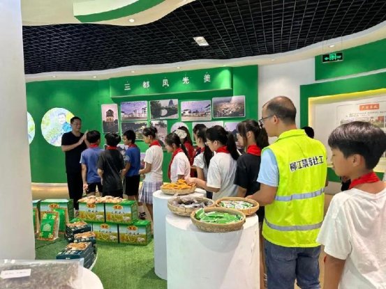 在示范区展厅,讲解员生动介绍了“三都香葱”从传统零散种植品种到成为特色品牌产业的发展过程,孩子们通过图片、文字和实物展品深入了解了三都镇香葱特色产业的发展历程。