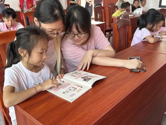 随后,开展“乡村暑韵书香浓,童梦书海乐无穷”暑期阅读活动。返家乡社会实践大学生志愿者带领小朋友们阅读“护苗·绿书签”主题绘本《护苗有我 守护未来》,书中图文并茂、富有趣味的内容迅速抓住了小朋友们的眼球。