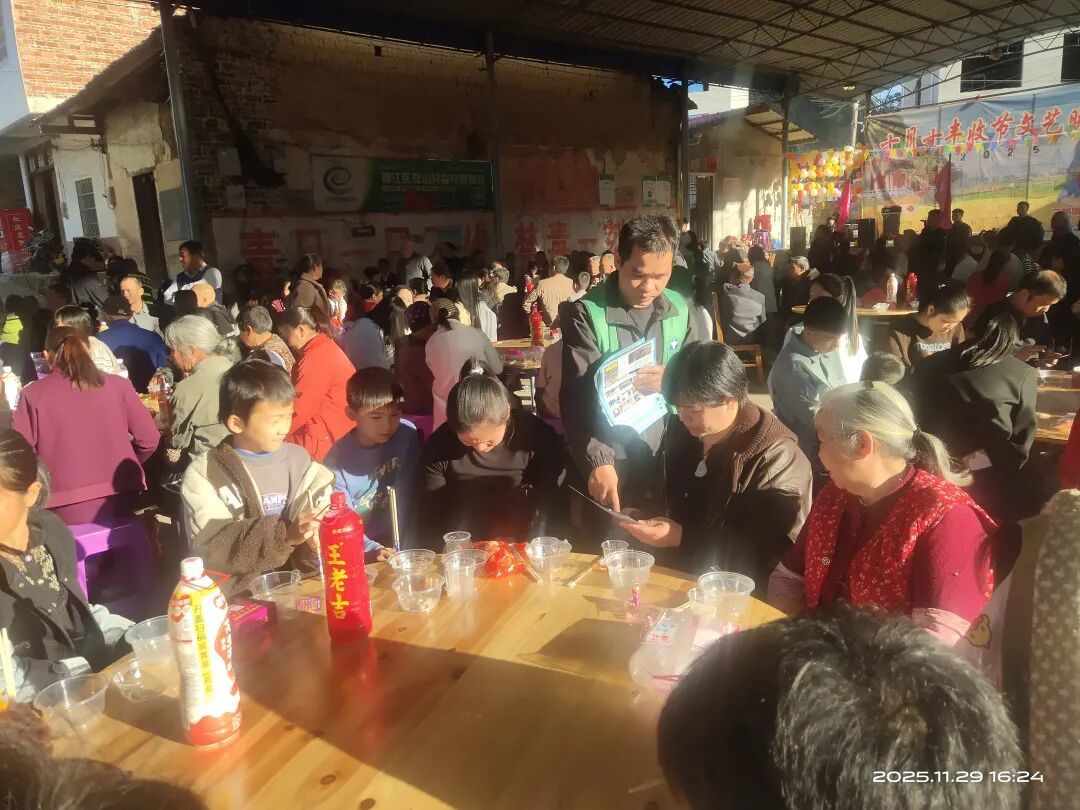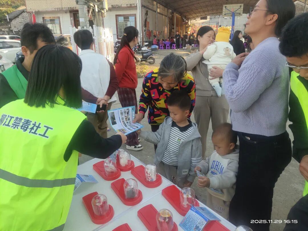 为深入推进三都镇禁毒“百日攻坚”专项行动,扩大禁毒宣传覆盖面,筑牢全民禁毒思想防线,11月29日,三都镇抓住觉山村庙会“人流量大、传播性好”的有利契机,组织禁毒办、平安法治办,团委、妇联、关工委等部门工作人员,到庙会现场开展 “健康人生・绿色无毒” 主题禁毒宣传活动,让禁毒知识“沾着烟火气”走进群众生活。