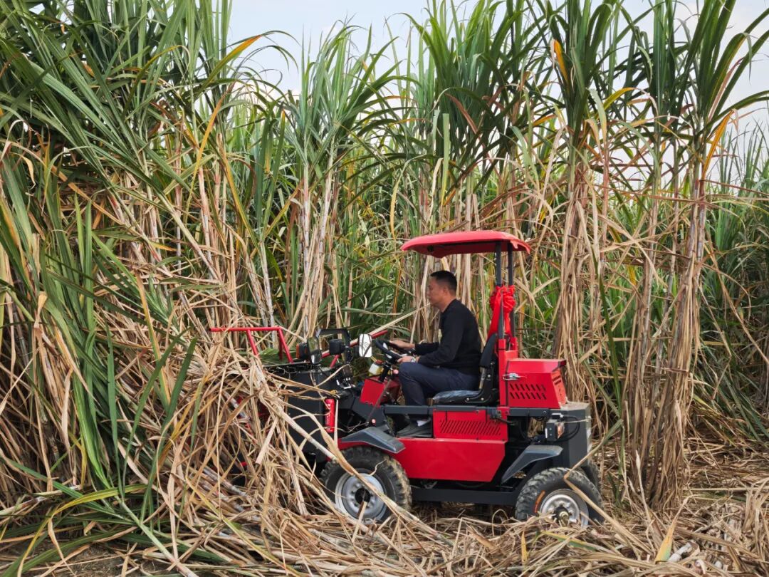 2025年,三都镇甘蔗种植面积达到2800亩,亩产量5至6吨,预计总产量达1.6万吨,首次引进机械化收蔗。柳江区誉亮种养专业合作社负责人韦初亮正在操作甘蔗收割机,他兴奋地说:“人工砍蔗,一天也就砍1.5吨左右,农户还得自己扛上车,收完腰都直不起来。现在机械收割真是太方便了!”
