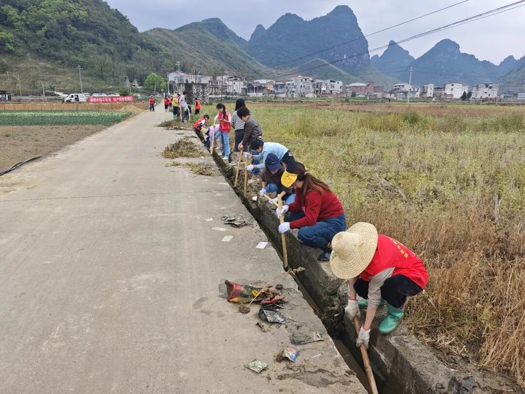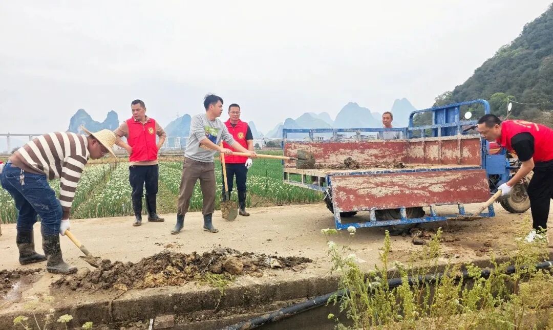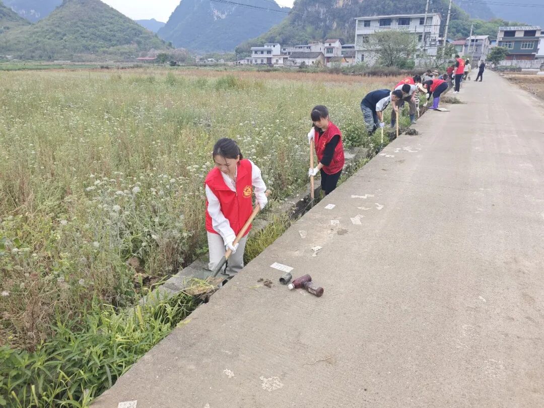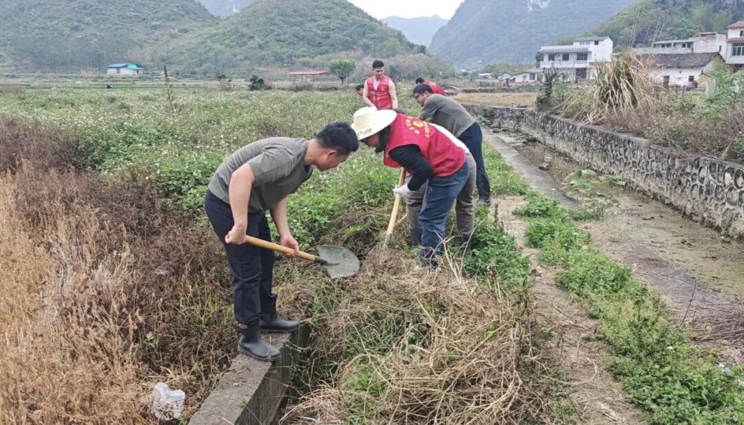 活动现场,党员干部及志愿者们手持铁锹、锄头等工具,分组分段对水稻主产区周边约500米长的灌溉水渠进行了全面而细致的清理。他们或弯腰铲除渠底淤积的泥沙,或清理肆意生长的杂草灌木,或合力清运堆积的垃圾石块,现场呈现出一派热火朝天的劳动景象。“作为党员,就要在群众需要的地方站出来、干起来!”党员覃忠研一边清理渠底淤泥,一边坚定地说。