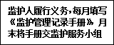 由综治牵头的以居住地村(居)委会工作人员(网格员)、社区精防医生、社区(驻村)民警、残联专干、监护人等组成严重精神障碍患者监护服务小组,并纳入网格化管理,监护服务小组自接到监护人申请后每月对监护人监护管理情况进行审查认定,并在《监护管理记录手册》相应栏目中签字: