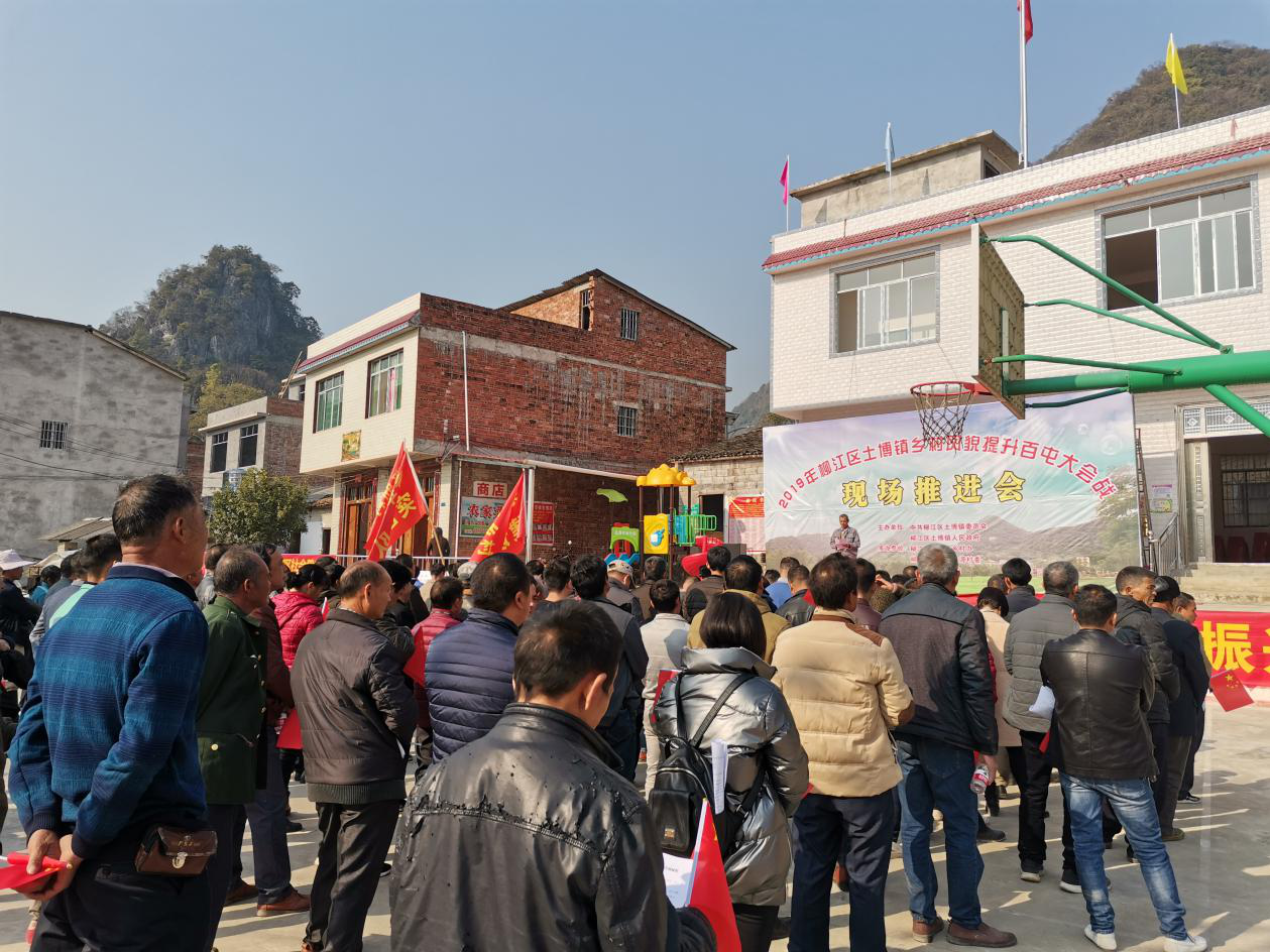 为加快推进“三清三拆”工作,贯彻落实自治区、柳州市、柳江区乡村风貌提升三年行动精神,12月13日,土博镇在水源村木贯屯召开了2019年柳江区土博镇乡村风貌提升百屯大会战现场推进会。镇班子成员、挂村工作队长,各驻村工作队员,各村党支书、各屯小组长近200参加了现场推进会。