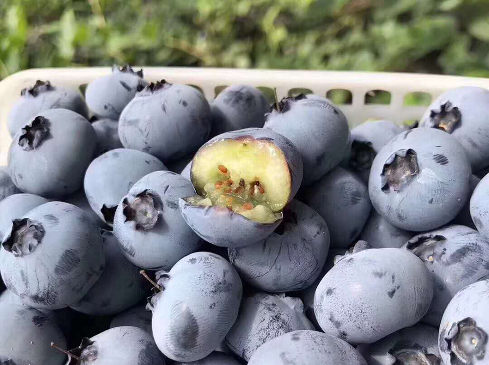 盛夏,一颗颗“黑珍珠”般的蓝莓果儿挂满枝头,令人垂涎欲滴。尝起来酸酸甜甜、带有小麦草清香的土博蓝莓 ,不仅颗粒大,果实饱满,果实中含有丰富的营养成分,尤其富含花青素,它不仅具有良好的营养保健作用,还具有防止脑神经老化、强心、抗癌、软化血管、增强人体免疫等功能。联合国粮农组织列将蓝莓列为人类五大健康食品之一,誉为 “ 黄金浆果 ” 。