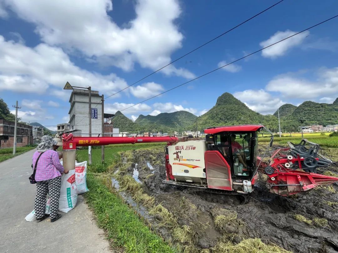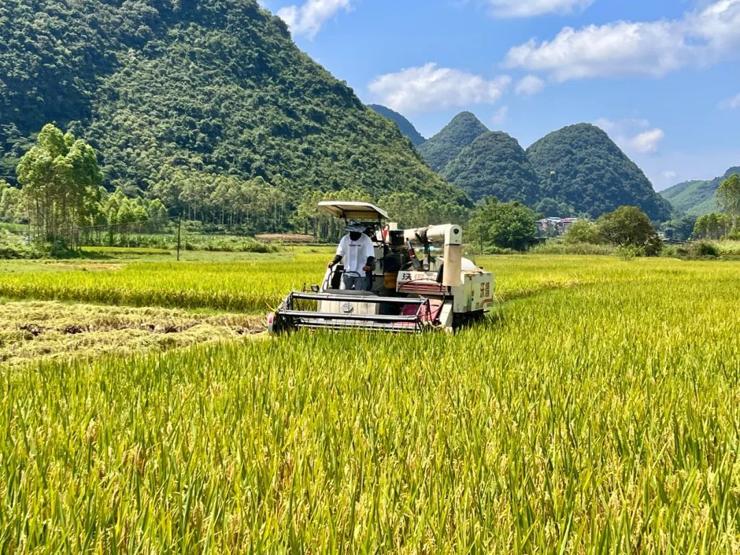 受今年春季罕见干旱天气影响,春耕较往年滞后,土博镇各地夏粮采收近日陆续开始。金色稻浪翻涌如潮,收割机划过金色稻田在隆隆机声中尽扫颗粒归仓。
