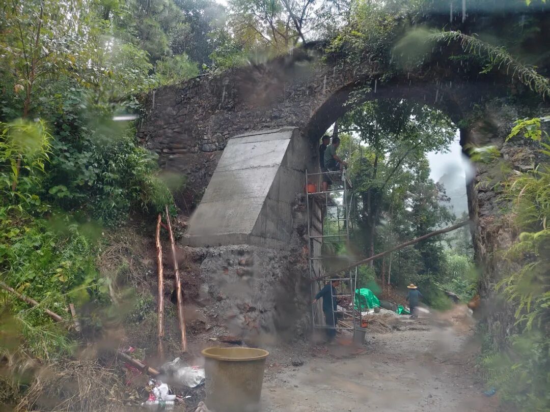 更令村民担忧的是,车辆在途经一座水利桥(村民日常下地劳作的必经之路)时,疑似因超宽碰撞桥墩,导致桥墩石块松动,存在严重的安全隐患。村民要求清理树兜的老板立即修复水管,并对桥墩进行加固维修。