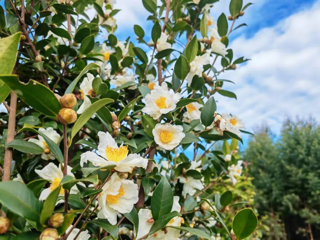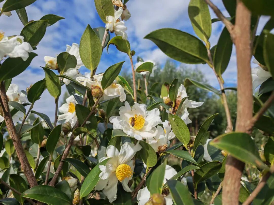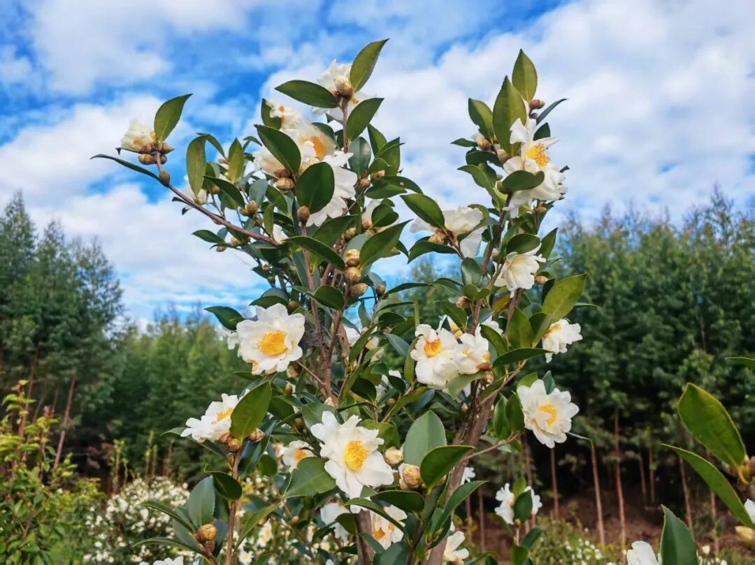 2019年,原本种植白花山茶油树的他,在桂林考察时偶然发现了这一优质品种。相较于传统白花品种,它花期更长、花色更艳,观赏价值高,产量和出油率也更胜一筹。