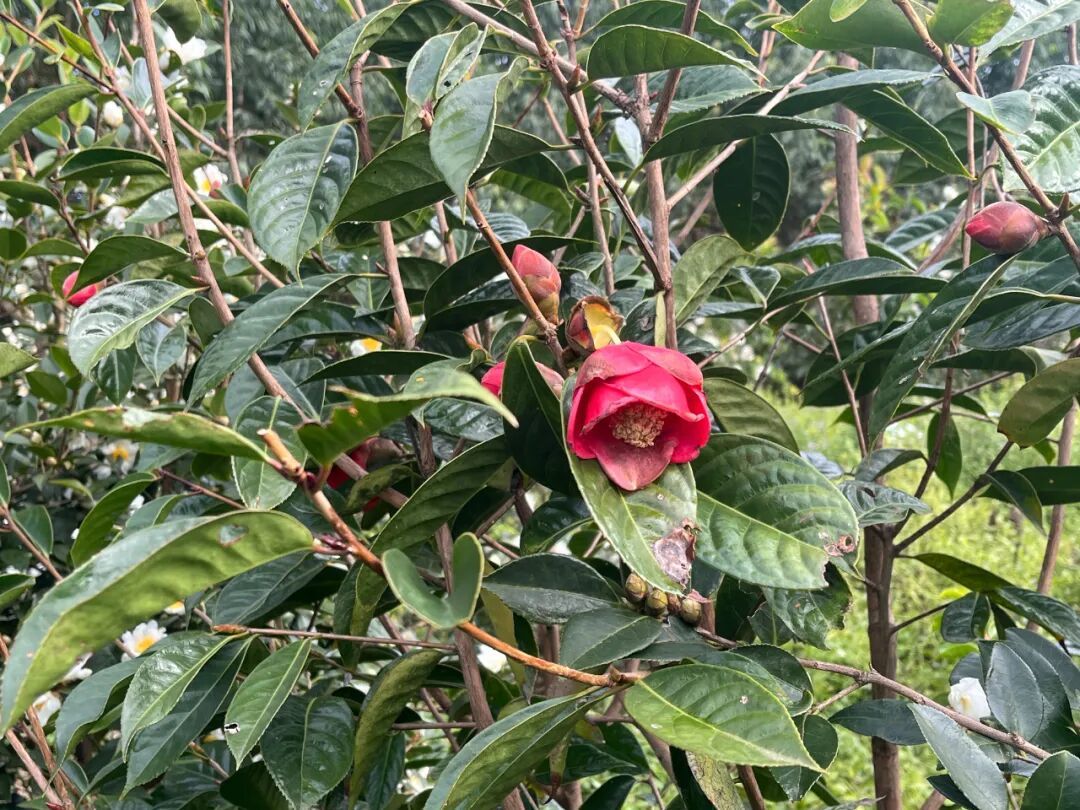 “相较于白色油茶花,红花山油茶树开花较晚,含苞待放。当初决定引进这种红花山茶油树,就是看中它有观赏和生态价值,还能带来实际收益!”看着眼前漫山盛放的红白相间的油茶花,种植户韦周陆满脸欣慰。
