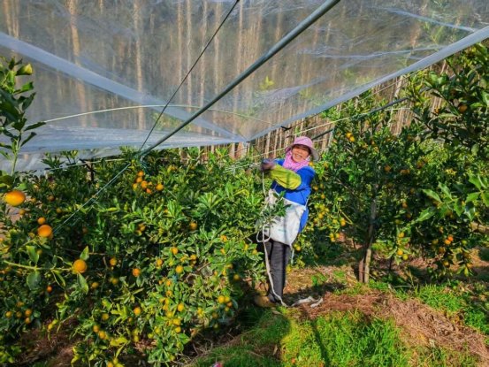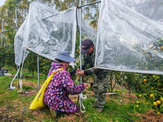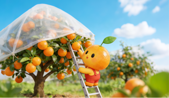 别小看这层薄薄的薄膜,它堪称“多功能防护盾”:既能防雨防晒,又能抵御霜冻,有效杜绝后期裂果、落果,还能延长采收期,让金桔在枝头充分积累糖分,确保每一颗都甜脆多汁、品质上乘!