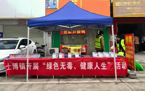 岁末年初,正是阖家团圆的美好时节。为守护元旦、春节双节社会稳定,提高群众禁毒防毒识毒意识,1月27日,土博镇以圩日子人流量大特点,在集市摆摊设点开展“绿色无毒、健康人生”禁毒教育科普宣传活动。