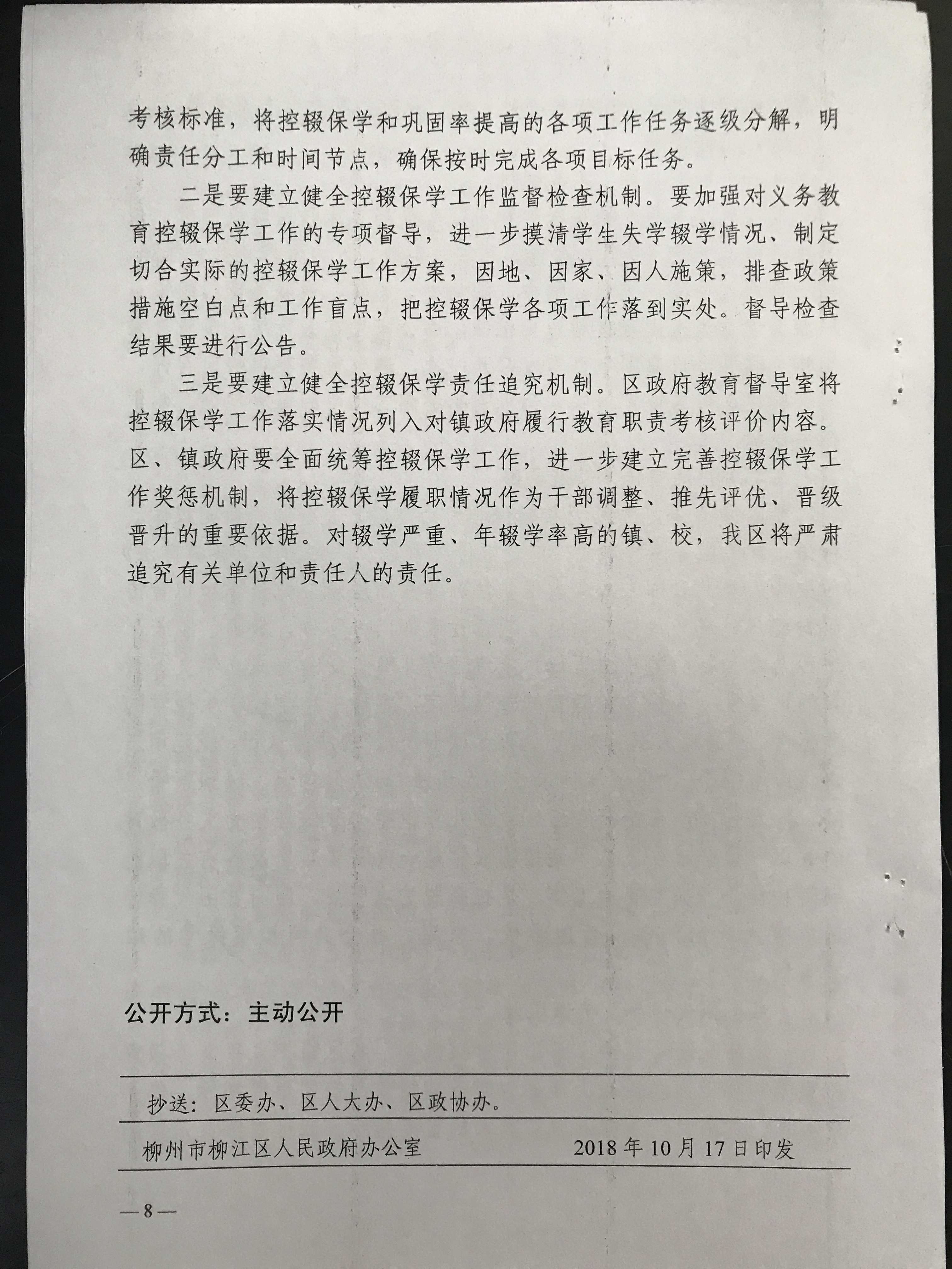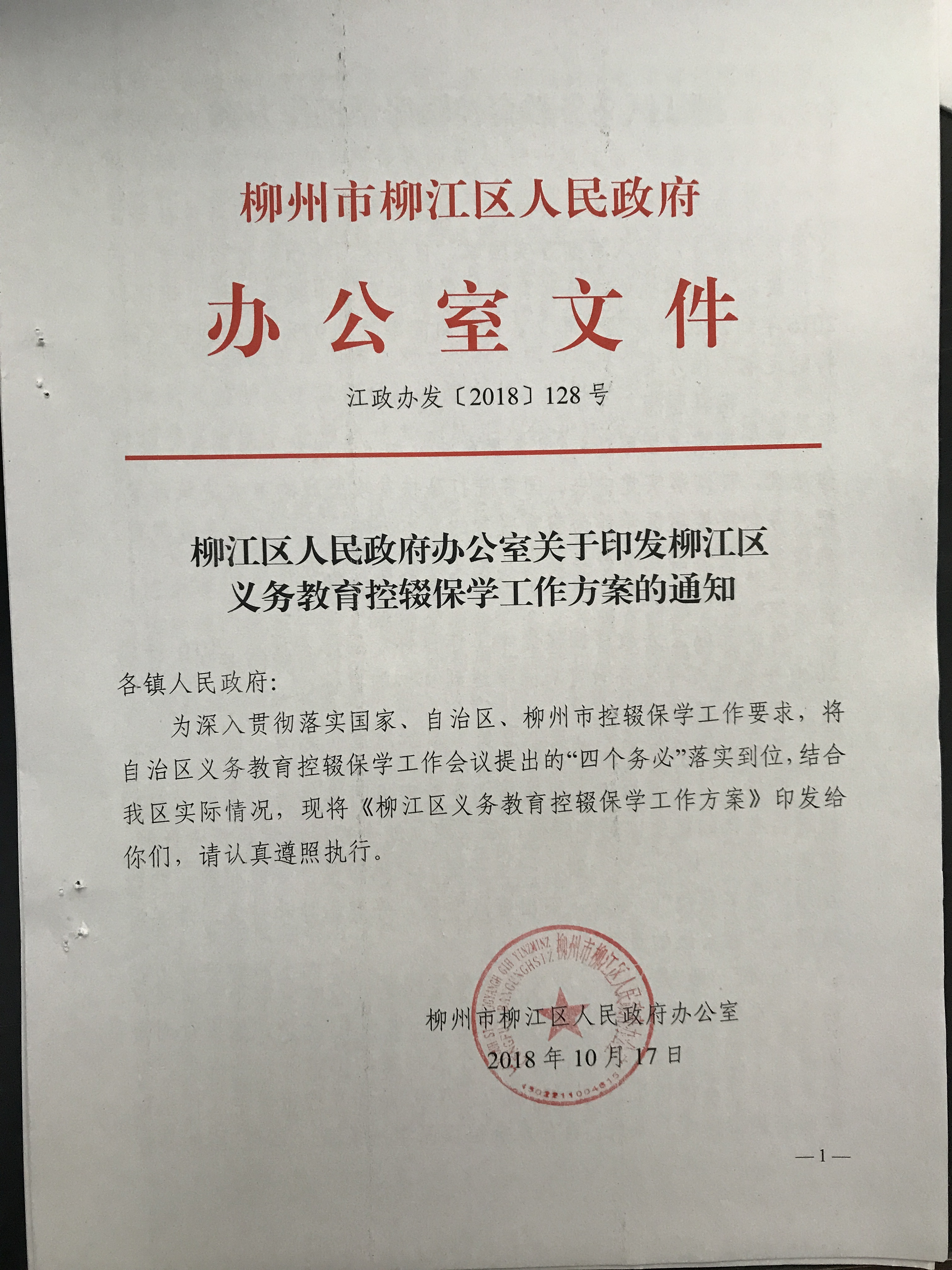 柳江区人民政府办公室关于印发柳江区义务教育控辍保学工作方案的通知