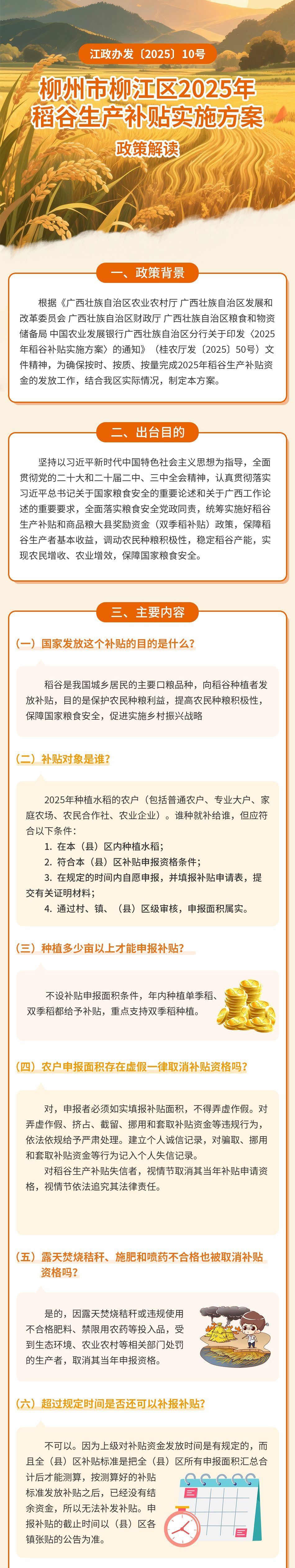 【图解解读】江政办发〔2025〕10号 《柳州市柳江区2025年稻谷生产补贴实施方案》的政策解读