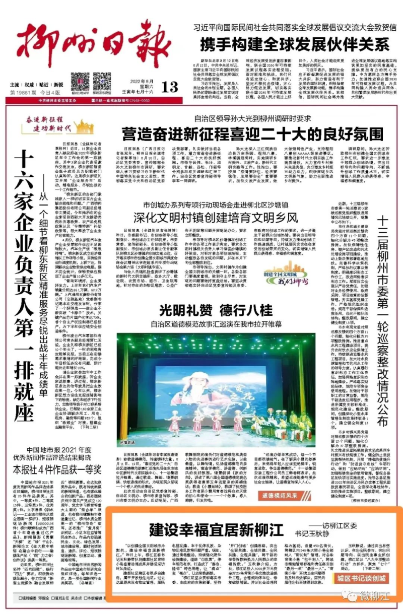 争创全国文明城市,柳江在行动。8月12日、13日,市广播电视台《柳州新闻》“城区书记谈创城”系列报道、在柳州APP《开门创城直播间》、《柳州日报》头版分别通过视频、直播、访谈文章等形式,聚焦柳江区开门创城工作取得的成效、特色及亮点。