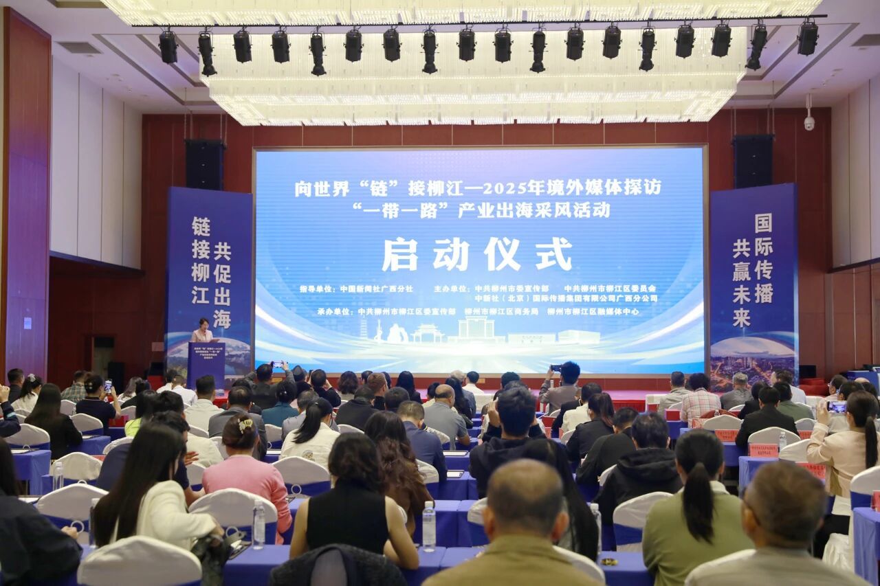 10月21日,向世界“链”接柳江——2025年境外媒体探访“一带一路”产业出海采风活动在启迪(柳州)科技城启动,来自五大洲的30家海内外媒体,以及外贸出口企业代表、柳江区新媒体联合会成员单位代表齐聚现场,共同为柳江产业出海搭建国际传播桥梁。柳州市委常委、宣传部部长谢建伟;柳江区委书记玉秋静;中国新闻社广西分社社委、副总编辑杨陈;中新社国际传播集团有限公司广西分公司总经理廖敏佳;柳州市融媒体中心主任、党委书记,柳州市委宣传部副部长(兼)龚继海;柳州市商务局副局长肖家勇;柳江区委常委、宣传部部长黄辉;柳江区政府副区长韦静参加活动。