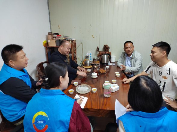 工作队先后到拉堡镇基隆村、居宁社区、富鑫社区走访了工业、服务业、批发业三大行业的三家样本个体户,了解普查对象2023年的经营状况。同时现场指导普查员询问技巧、如何利用辅助工具计算填报普查登记表,提升普查登记数据质量。