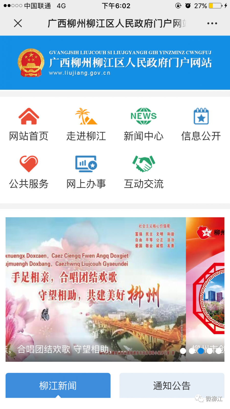 指柳江区骨干微信公众号通过集群展示,提供一个集柳江区资讯、政务、便民、互动于一体的融媒体矩阵。