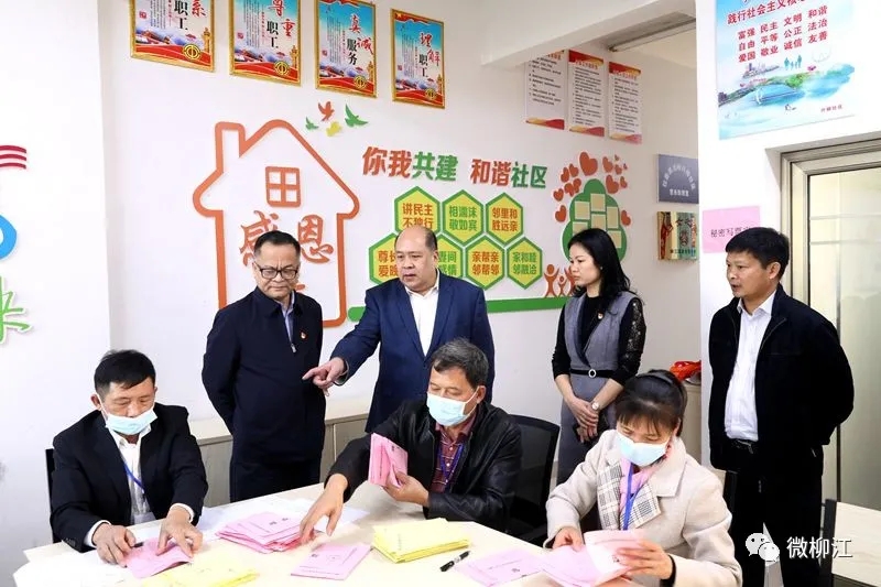 向军一行来到拉堡镇老乡家园兴柳社区,现场观摩了兴柳社区第七届居民委员会选举大会,对柳江区村(居)民委员会换届选举前期准备工作、现场布置、依法依规开展选举等方面给予了肯定。他强调,要继续把好程序关,在时间节点、关键环节、操作流程的把握上再严格、再细化,确保环环相扣,公平、公正、公开,有序有效推进选举工作,确保本次换届选举工作圆满完成。