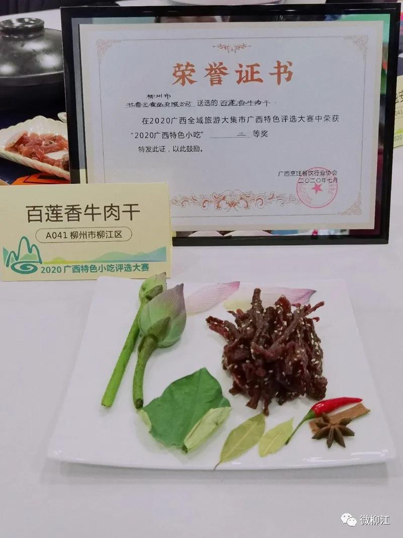 7月19日16时,为期三天的“2020广西全域旅游大集市”在南宁国际会展中心B2馆落下帷幕。大集市以销为主、展销结合的系列活动场面火爆。来自柳江区的百莲香牛肉干等特色产品,在展销活动中成绩不俗;其间举办的广西特色小吃大赛活动中,百莲香牛肉干夺得二等奖佳绩。