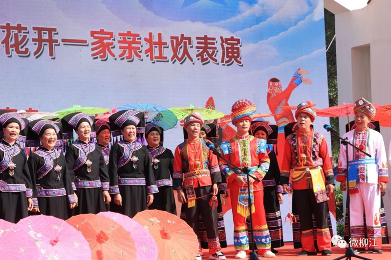 活动在歌舞《爱我中华》中拉开序幕,精彩节目柳北区民族团结手拉手风情手鼓表演、柳江区石榴花开一家亲壮欢歌唱等轮番登场。期间,还进行学习贯彻党的二十大精神主题宣讲,铸牢中华民族共同体意识知识抢答等,让与会人员更深刻地了解到民族团结对于乡村振兴的发展意义,营造“中华民族一家亲”的浓厚氛围。