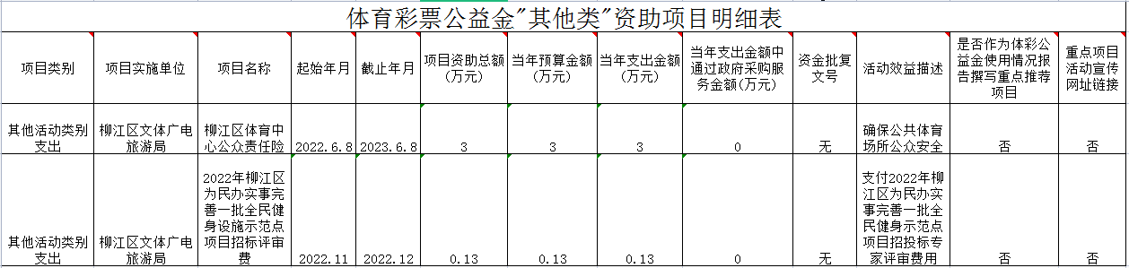 柳江区2022年体育彩票公益金使用情况公告