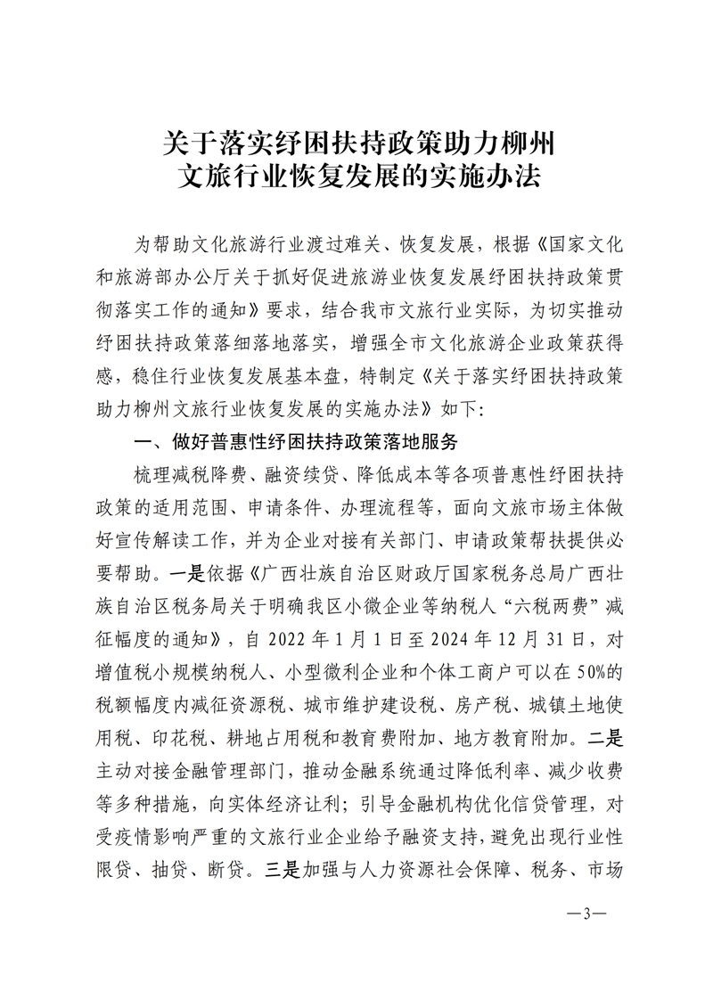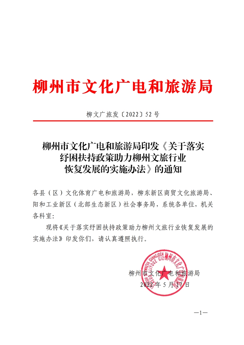 柳州市文化广电和旅游局印发《关于落实纾困扶持政策助力柳州文旅行业恢复发展的实施办法》的通知