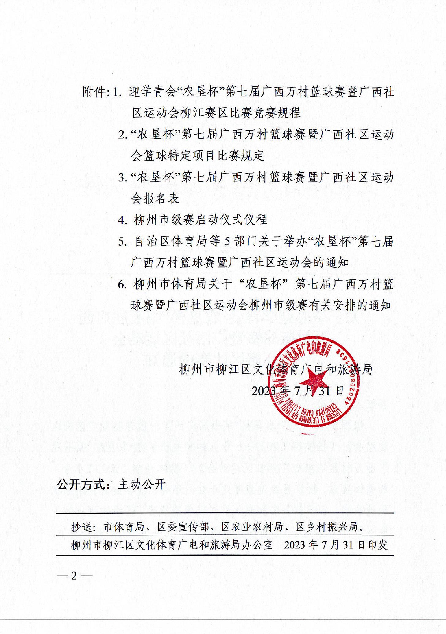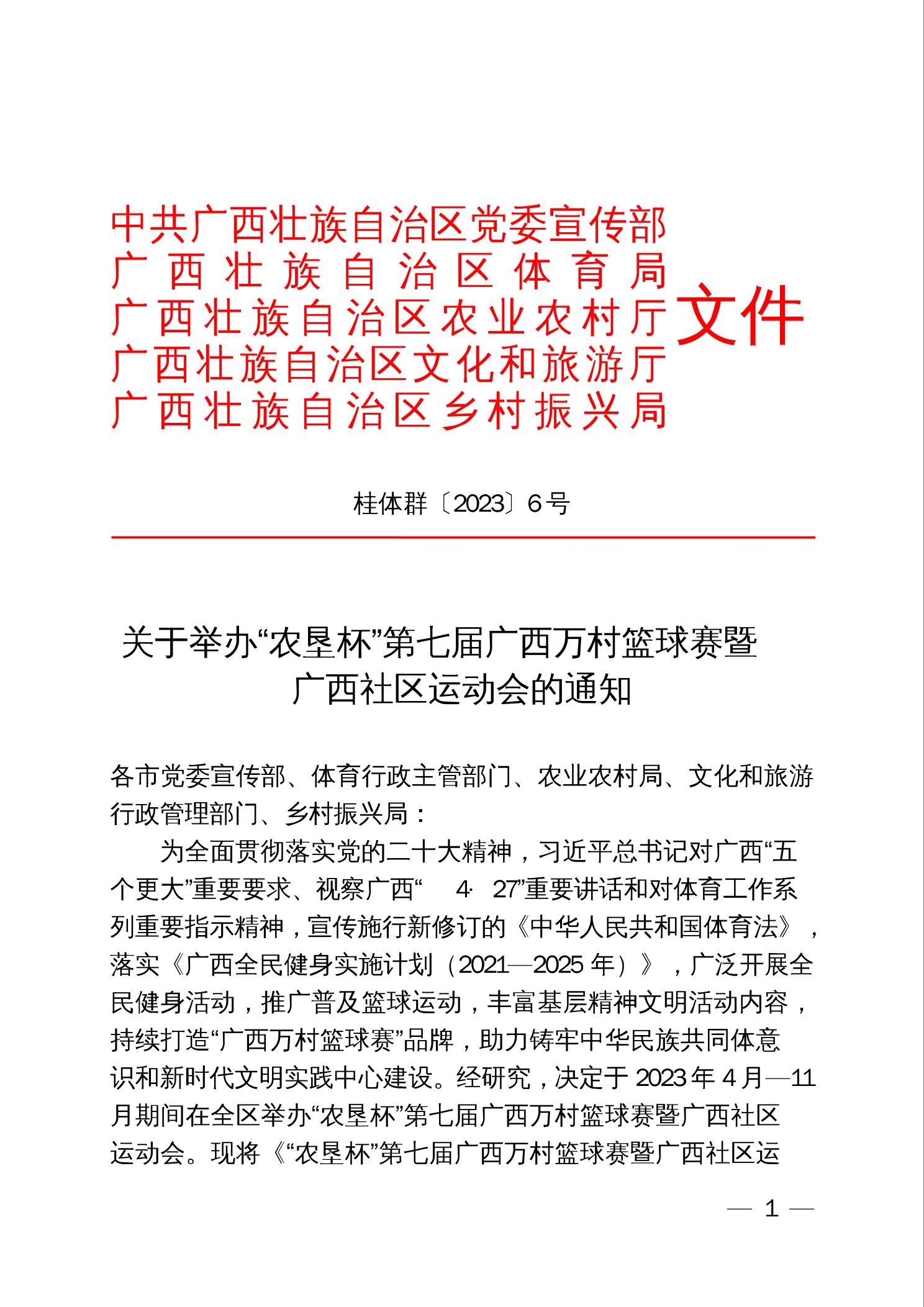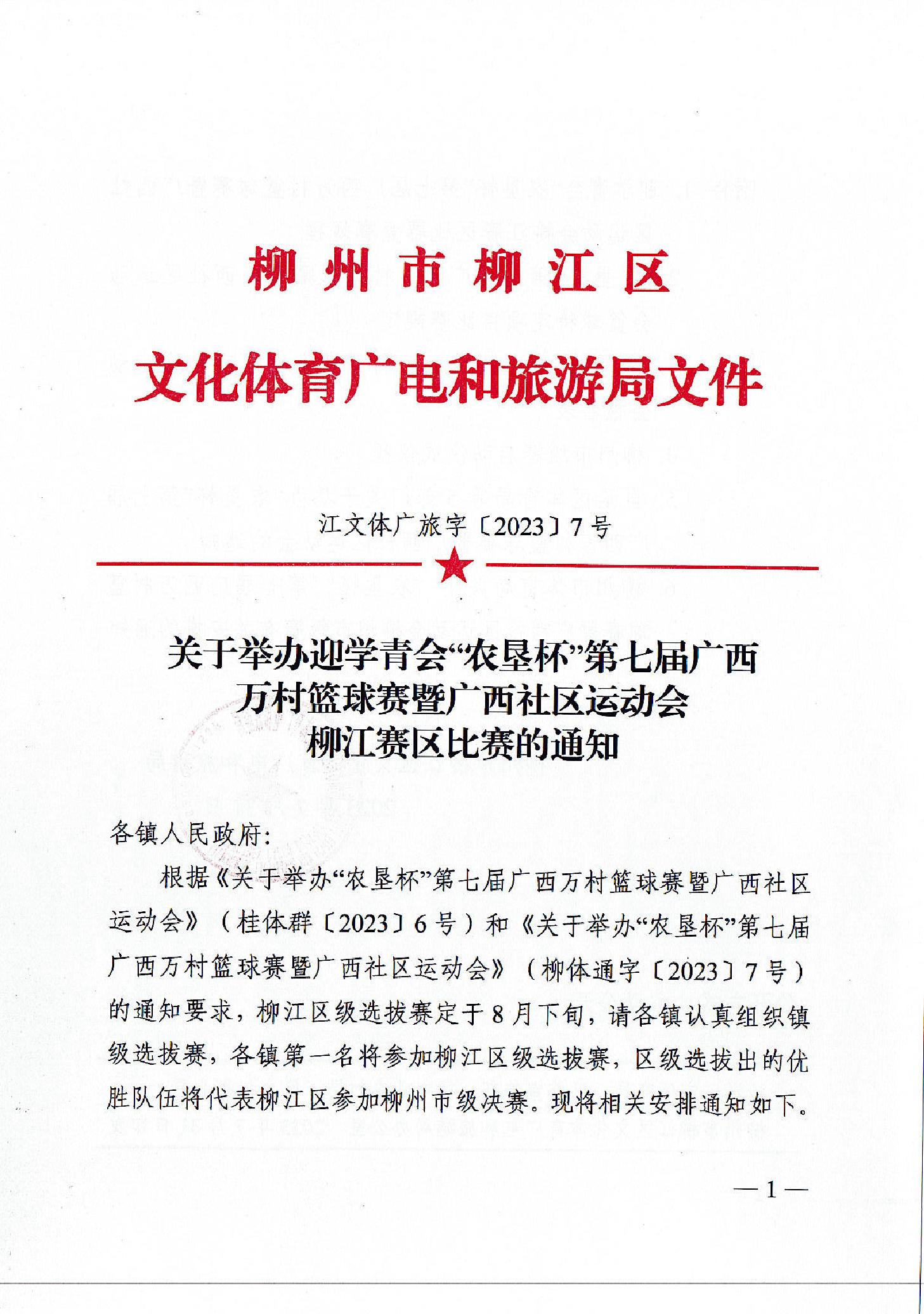 江文体广旅字〔2023〕7号关于举办迎学青会“农垦杯”第七届广西万村篮球赛暨广西社区运动会柳江赛区比赛的通知