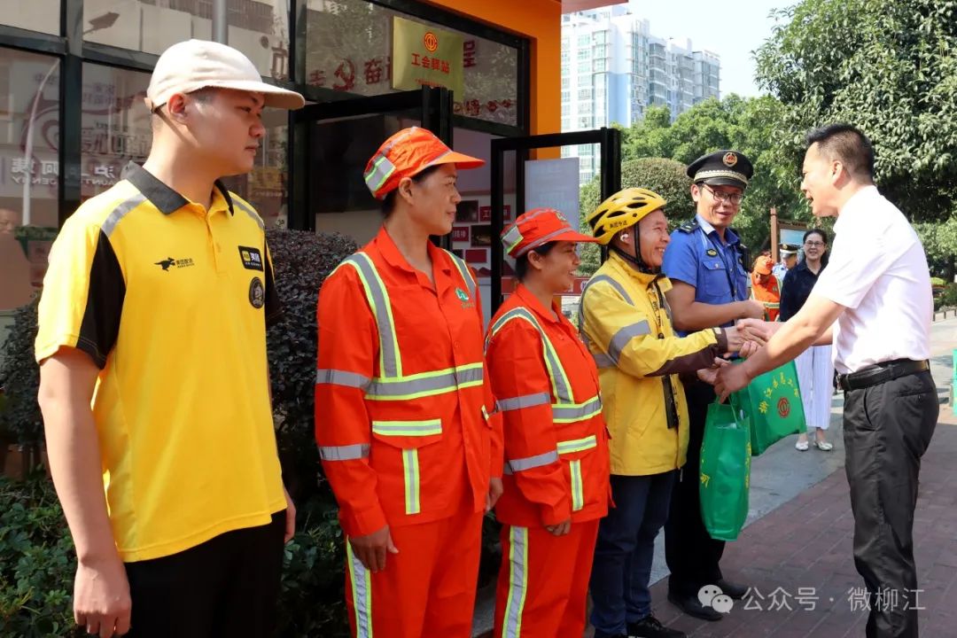 仪式上,与会领导为“工会驿站柳江区人民文化宫站”揭牌,并为户外工作者代表发放慰问品。