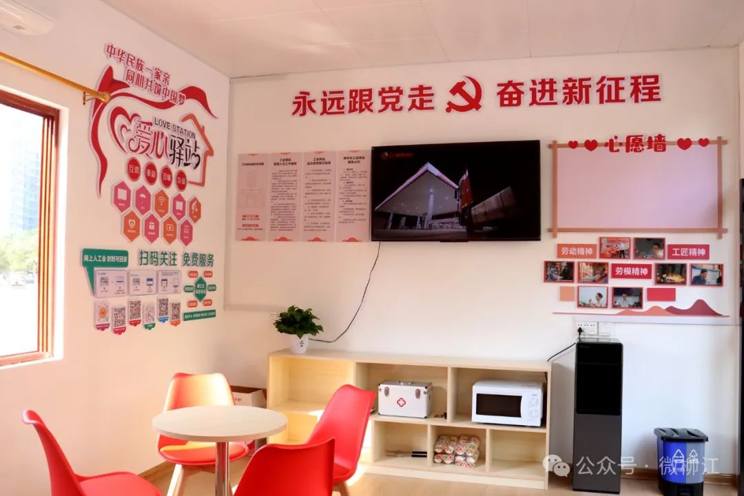 近年来,柳江区瞄准“建家”方向,探索多元化服务阵地建设模式,推动“会、站、家”一体化转型升级,融合工会爱心服务点、农民工工作站、爱心妈咪小屋、职工书屋等功能为一体,在全区各镇、各社区、各大银行网点及非公企业沿街建设工会爱心驿站32家,创建“镇+社区+银行网点+非公企业”四位一体延伸覆盖模式,让职工在一公里内都能找到“家”,努力做好职工“娘家人”。