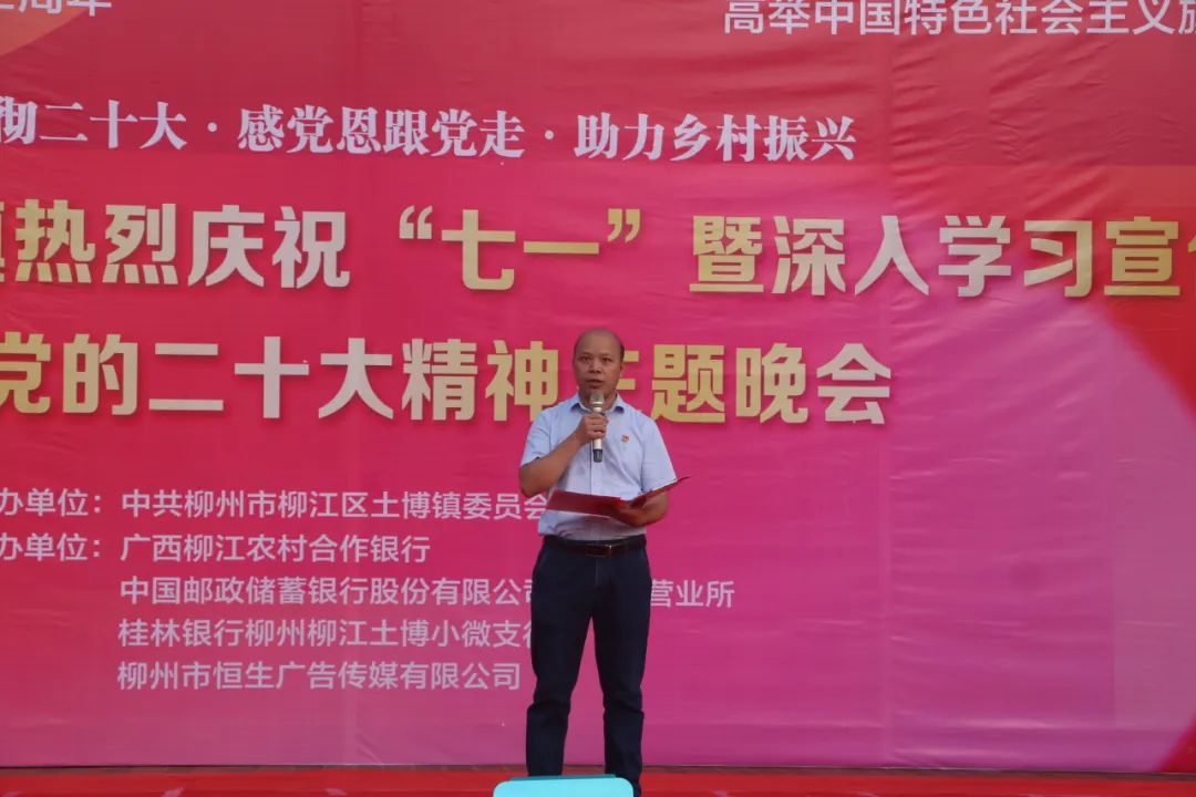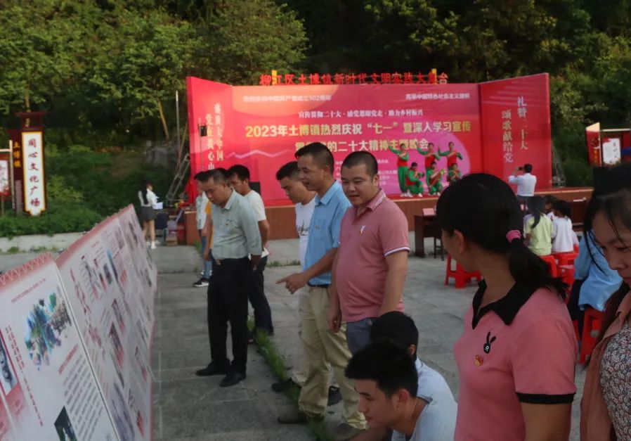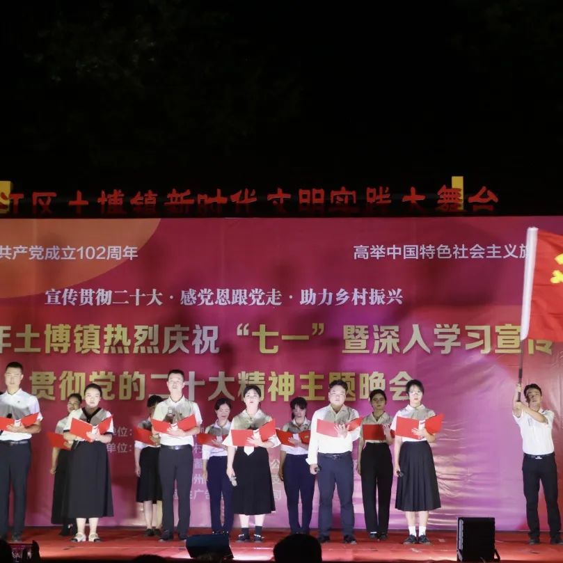 为隆重庆祝党的102周年华诞,深情回顾党的奋斗历史,热情讴歌党的光辉业绩,增强党组织的凝聚力和战斗力,进一步激励广大党员的理想信念、不断加强政治忠诚教育和党性教育,切实增强党员教育的政治功能和组织功能,从而更加坚定党的领导,6月28日晚上,土博镇廉政广场上一场主题为“宣传贯彻二十大·感党恩跟党走·助力乡村振兴”的晚会正在上演。全镇1000余名党员群众到现场认真观看。