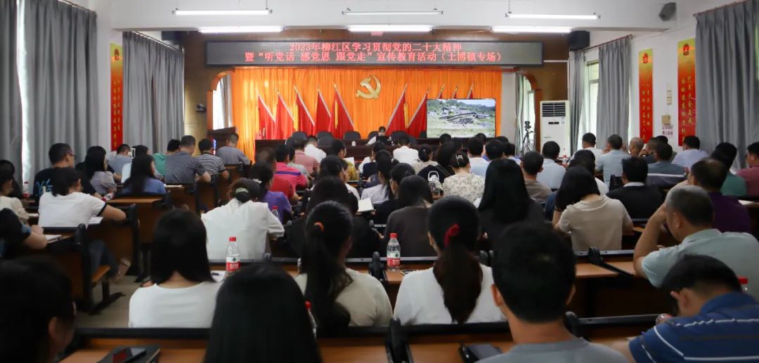 7月3日上午,柳江区学习贯彻党的二十大精神暨“听党话 感党恩 跟党走”主题宣讲活动在土博镇举行,土博镇干部职工,村“两委”干部代表参加宣讲会。