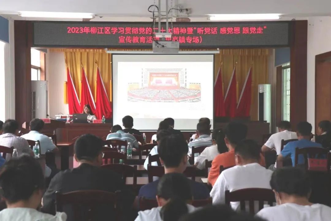 宣讲活动中,中共柳江区委党校讲师、柳江区百姓宣讲团成员杨莲丽以感动中国2022年度人物、第八届全国道德模范提名获得者杨宁在广西融水苗族自治县安陲乡江门村担任党总支书记时的敬业奉献事迹为切入点,紧扣学习贯彻党的二十大精神暨“听党话、感党恩、跟党走”的宣讲主题,作了一番精炼朴实的分享报告,在座干部职工深受感动、教育和启发,反响热烈。
