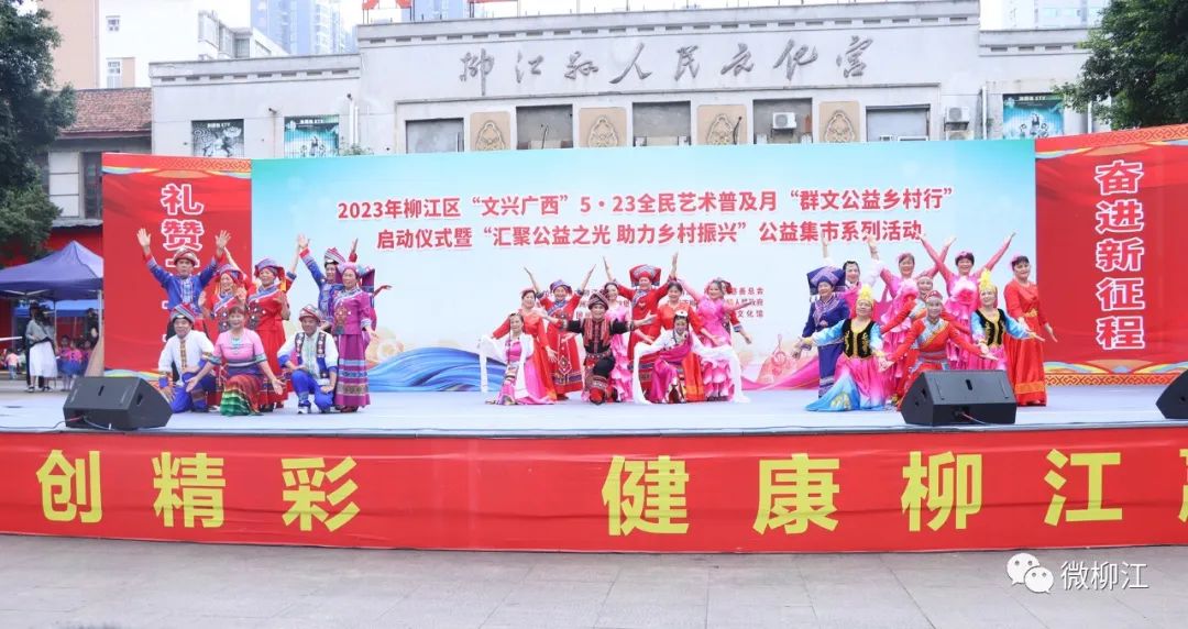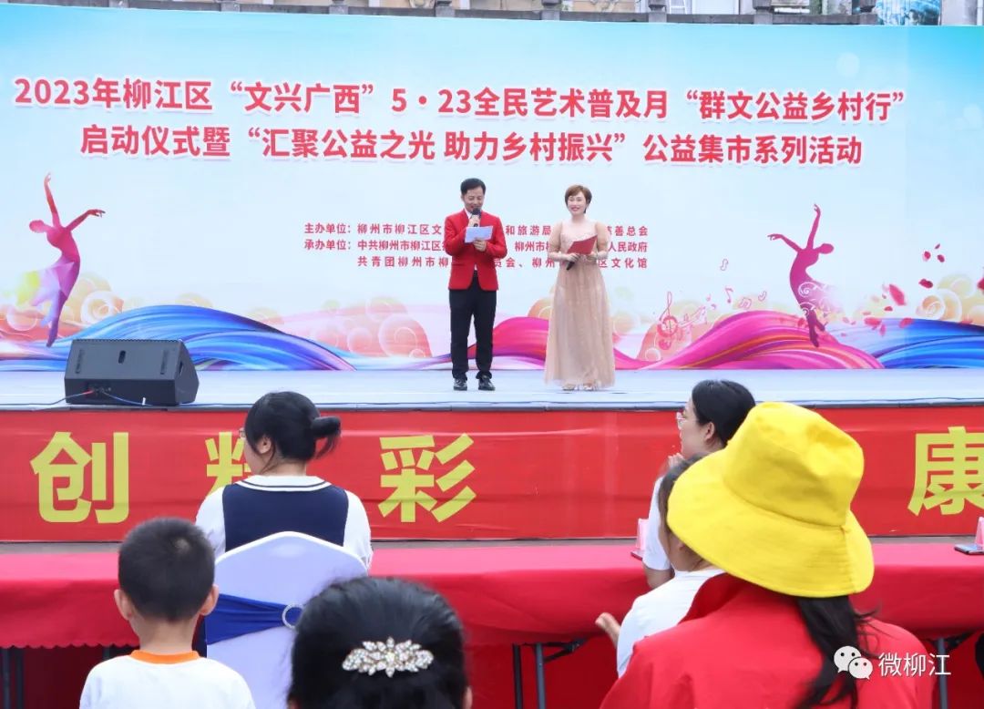 5月20日,柳江区文化宫广场人潮涌动,热闹非凡,2023年柳江区“文兴广西”5·23全民艺术普及月“群文公益乡村行”启动仪式暨“汇聚公益之光 助力乡村振兴”公益集市系列活动在此举行。