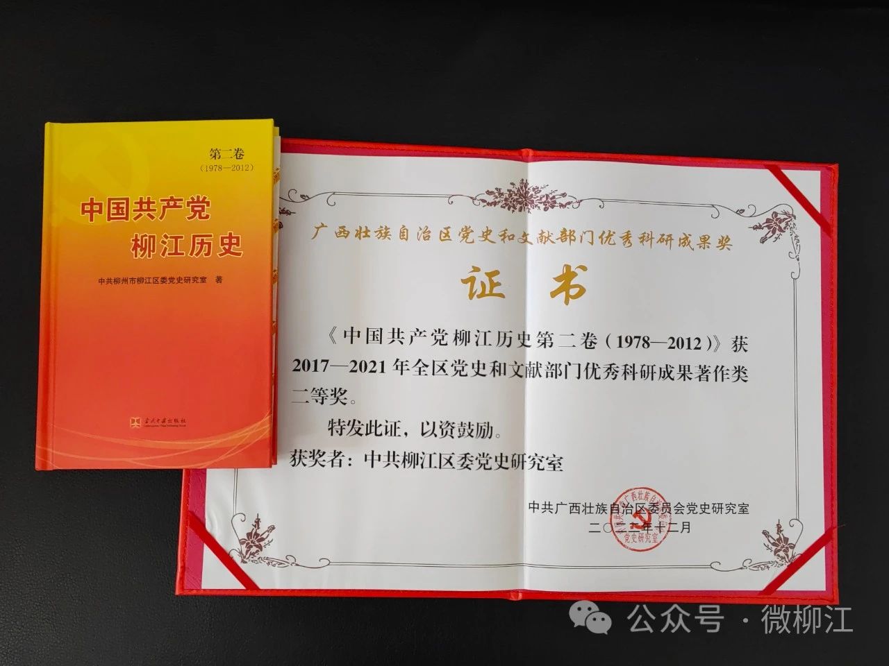 党史著作编撰成果:《中国共产党柳江历史二卷(1978-2012)》获2017-2021年自治区党史和文献部门优秀科研成果著作类二等奖。