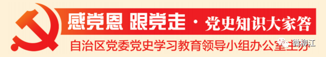 为响应党中央关于在全党开展党史学习教育的号召,自治区党委党史学习教育领导小组办公室从3月1日起,在全区各主要新闻媒体及新媒体平台、各县级融媒体中心和“学习强国”广西学习平台同步开设“感党恩 跟党走·党史知识大家答”专栏,以党史知识问答的形式引导党员干部群众学史明理、学史增信、学史崇德、学史力行,推进学党史、悟思想、办实事、开新局,为建设壮美广西、共圆复兴梦想,夺取全面建设社会主义现代化国家新胜利汇聚时代伟力。