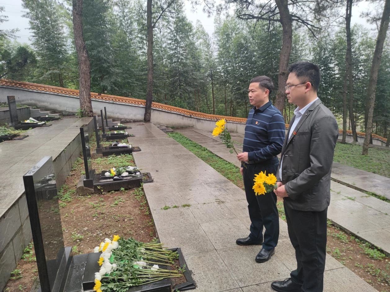 苍松青柏掩映,菊花随风摇曳。集体悼念仪式结束后,干部职工们怀着崇敬与感恩之情,依次为革命先烈送上鲜花,并绕烈士纪念碑一周,瞻仰烈士纪念碑,悼念为了今天幸福生活而抛头颅、洒热血的革命先烈。领导干部依次缓步走向烈士墓群,俯身于烈士墓碑前,敬献鲜花并逐一擦拭墓碑上的灰尘,庄重敬礼,祭英烈以敬仰。
