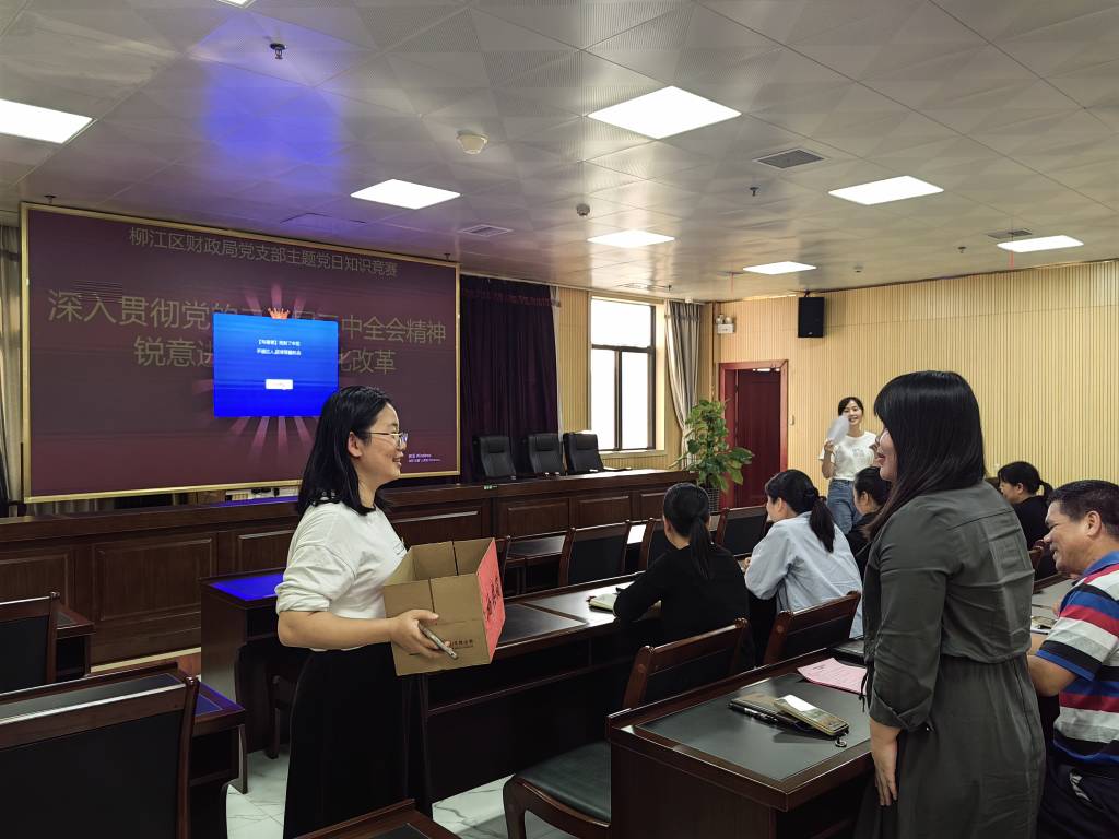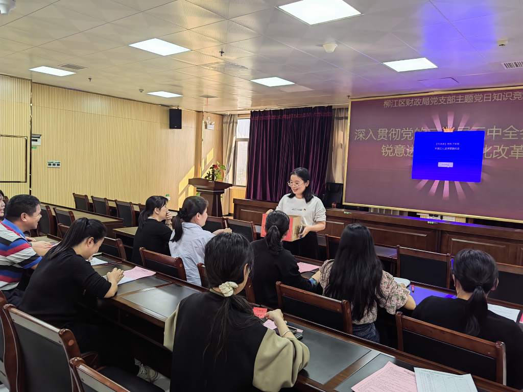 为深入学习贯彻党的二十届三中全会精神,加强党员队伍建设,增强党支部的凝聚力和战斗力,营造安全、和谐、健康财政,10月31日下午,区财政局开展了一场以赛促学,以学促智的知识竞赛活动。