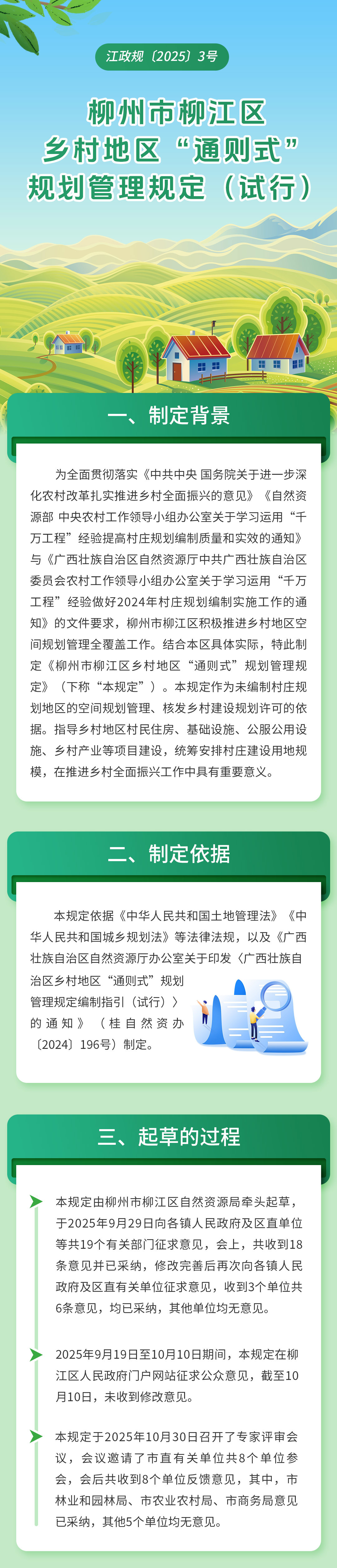 【文字解读】江政规〔2025〕3号 《柳州市柳江区乡村地区“通则式”规划管理规定(试行)》政策解读