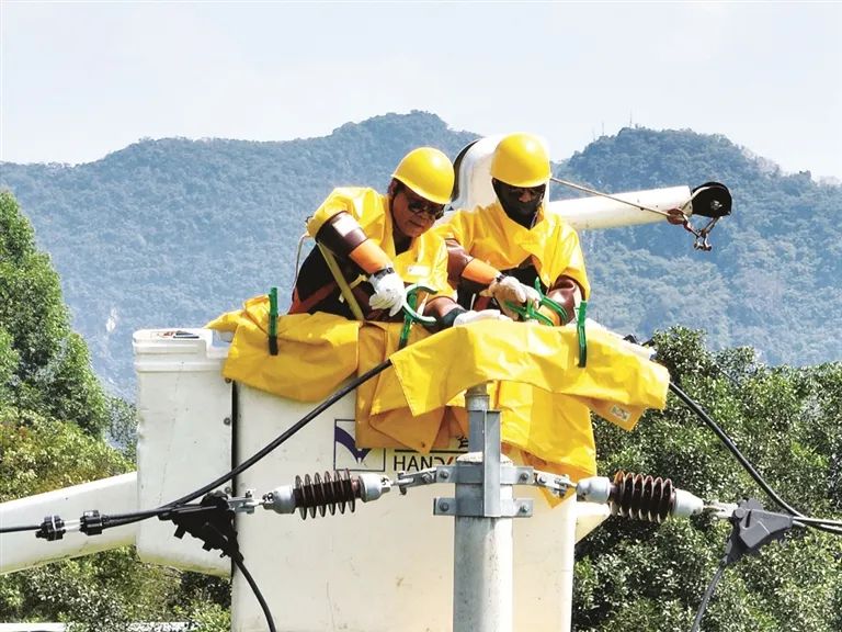 柳江供电局员工头顶烈日奋战保供电一线