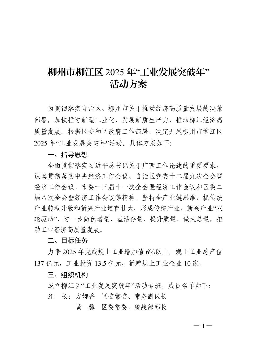 柳州市柳江区2025年“工业发展突破年”活动方案