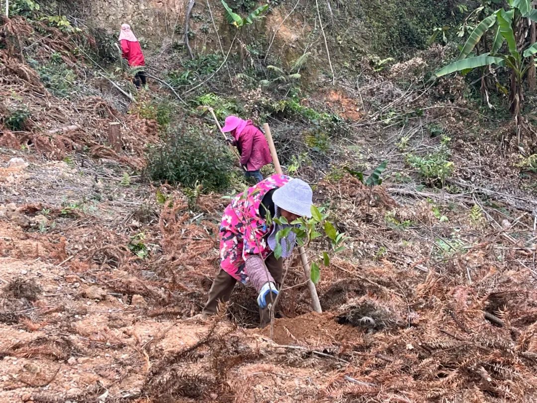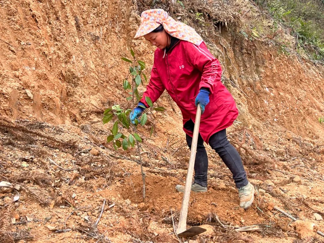 春回大地万物生。近日,在土博镇北隆村北伍屯海拔500多米的高山上,45亩新翻的土地散发着泥土的芬芳,一棵棵新种的红花山油茶苗在风中摇曳,焕发出勃勃生机。