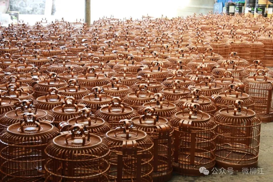 压竹条、塑型、打孔、雕刻、组装、上漆……手艺人黄爱菊有条不紊地埋头于手中的活计,忙碌的身影穿梭在基地车间。“我从事鸟笼制作已有15年,竹条的纹理和质地,我闭着眼都能辨出来。”在她心中,竹条不仅是制作材料,更承载着技艺的温度。依托自治区级非物质文化遗产项目,海洋鸟笼基地成为柳江壮族竹编生产性保护示范基地,古老的竹编技艺在这里焕发蓬勃生机。基地生产的鸟笼分高端、中端、大众三个档次,高端款单价超过千元,中端款四百至五百元,大众款一两百元不等,远销国内各大城市。