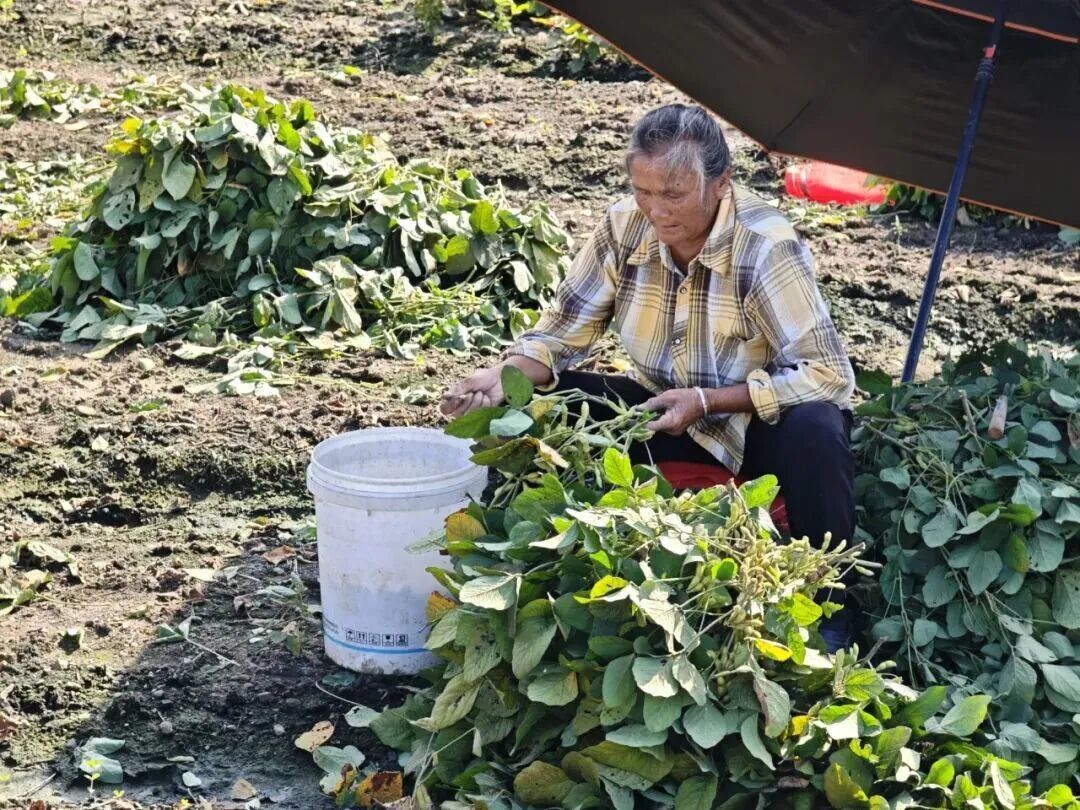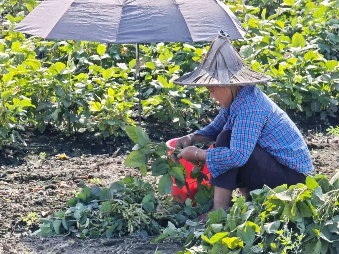 田间地头,采摘正忙。农户们趁着晴好天气,纷纷投入到紧张的采收中。她们熟练地穿梭于豆垄之间,手指轻巧地摘下一串串沉甸甸的毛豆,丰收的喜悦随着此起彼伏的采摘声,在田野间悄然荡漾。