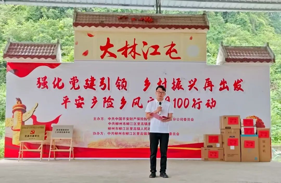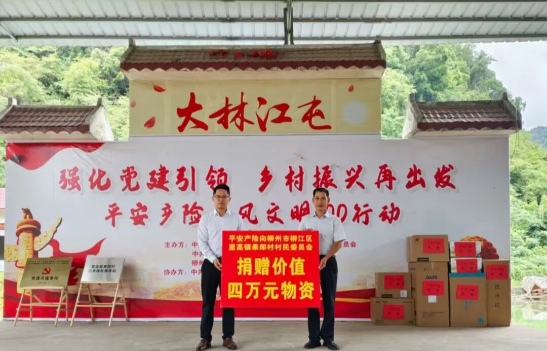 8月21日,平安产险“乡风文明100行动”暨党建共建结对活动在里高镇果郎村圆满举行。活动以“强化党建引领 赋能乡村振兴”为主题,通过组织共建、资源共融、发展共谋,深化村企合作,探索乡村振兴新路径。柳江区委组织部、国家金融监督管理总局柳江监管支局、里高镇党委、果郎村“两委”、平安产险柳州中心支公司等相关领导出席活动。