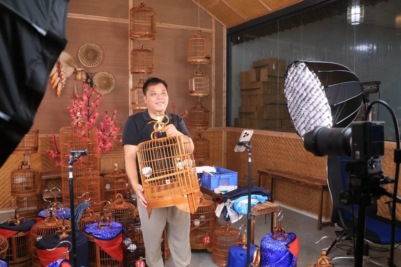 “眼看淘宝等电商平台热度越来越高,我试着用手机拍鸟笼详情图,学着做商品链接,没想到鸟笼销售效果很好。这手工艺品这么好,我定会全力把它推广出去让更多人知道。”梁海洋说,随着电商浪潮兴起,他敏锐地抓住机遇,将竹编鸟笼搬上电商平台,试水直播带货。白天,他和工人们专注制作鸟笼;夜晚,他便化身直播团队的一员,在镜头前展示竹编技艺的精妙,讲述鸟笼背后的文化故事。开播8年,直播间粉丝累计约100万人,平均单场累计观看在线观众数量约1万名,订单量较之前翻3倍,原本仅在本地有名的竹编鸟笼,借着直播销往全国各地。
