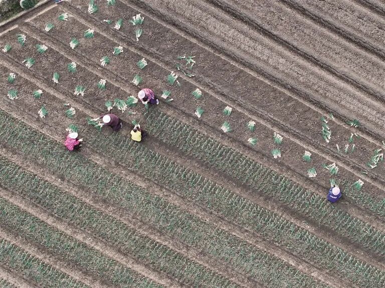 柳州市柳江区三都镇龙兴村村民在种植香葱。