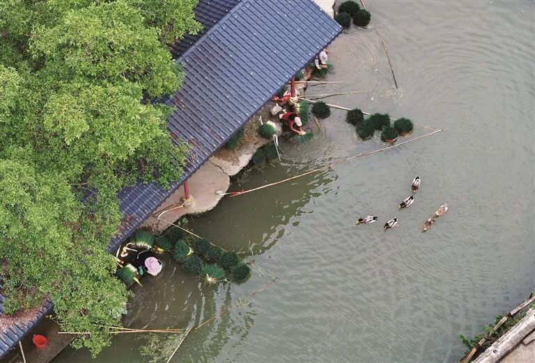 柳州市柳江区三都镇觉山村村民们在小河里洗香葱。