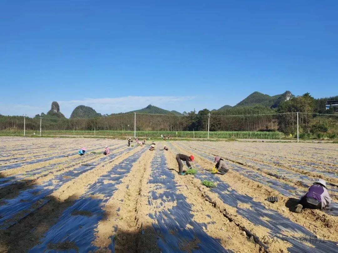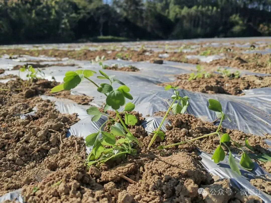 “岩黄连喜阴凉,土博镇海拔高,冬天气温偏低,正好契合它的生长习性。”种植户覃维定一边查看幼苗长势,一边分享种植心得。从精心选种到科学育苗,均由覃维定自主培育,全程严格把控,有效提升幼苗成活率。在田地面上铺设一层薄膜,既能减少水分蒸发,又能调节土壤温度,为幼苗安全越冬筑牢“防护屏障”。