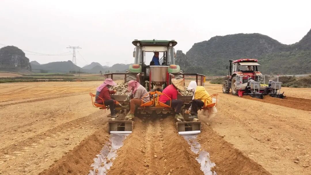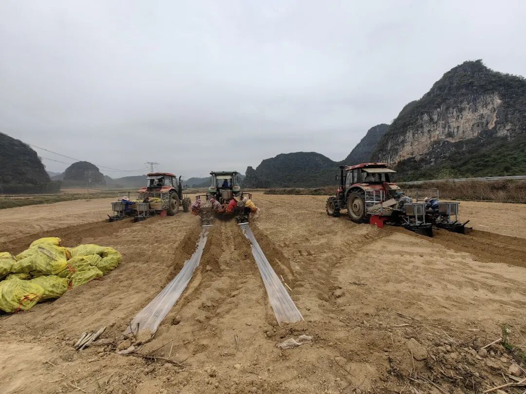 3月19日,记者来到柳江区百朋镇根林村甘蔗种植基地,映入眼帘的是一派高效的机械化作业场景。伴随着机器的轰鸣声,3台集开沟、施肥、摆种为一体的大型农机在蔗地里来回穿梭,开沟、施肥、摆种、覆土、盖膜、镇压等一体化作业工序便一气呵成,现代农业装备正在为传统的“甜蜜事业”注入全新的硬核力量。